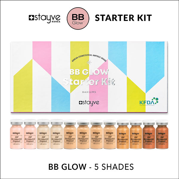 Stayve BB Glow starter kit contains all 5 shades of Stayve BB Glow ampoules for micro-needling treatment.